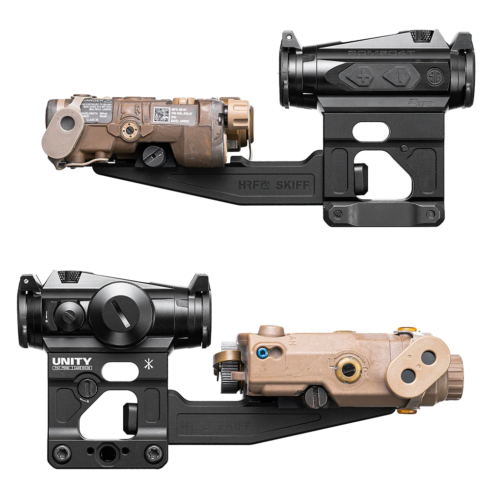 - Compared to the WS02016 (HRF SKIFF), the SKIFF II features two additional mounting holes in the middle. The DBAL is mounted directly onto the extension arm using screws, ensuring it doesn't block your scope's view for a clearer line of sight.
