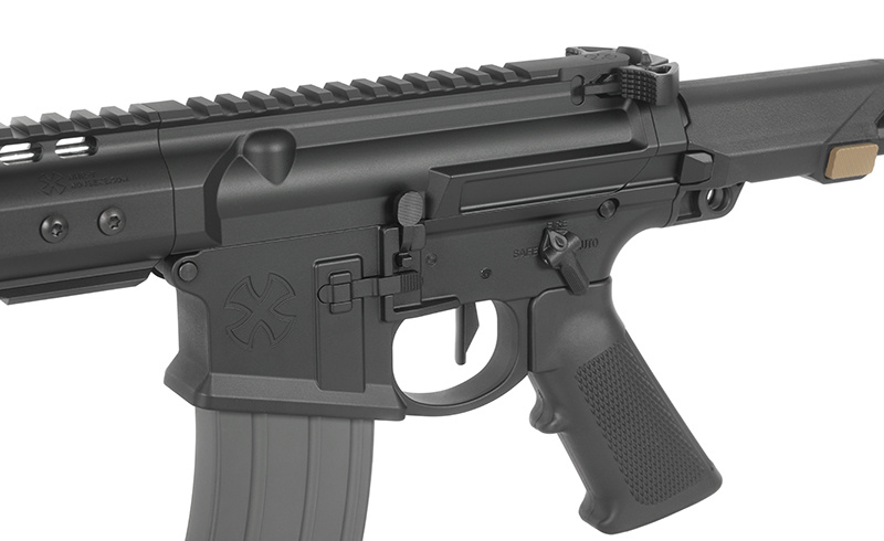 The Ghetto Blaster replica is equipped with a short-pull trigger, ensuring quick and precise shooting. Additionally, the 45-degree fire selector allows for fast and intuitive mode switching, while ambidextrous controls, such as the magazine release and bolt catch, enhance usability for both right- and left-handed players.