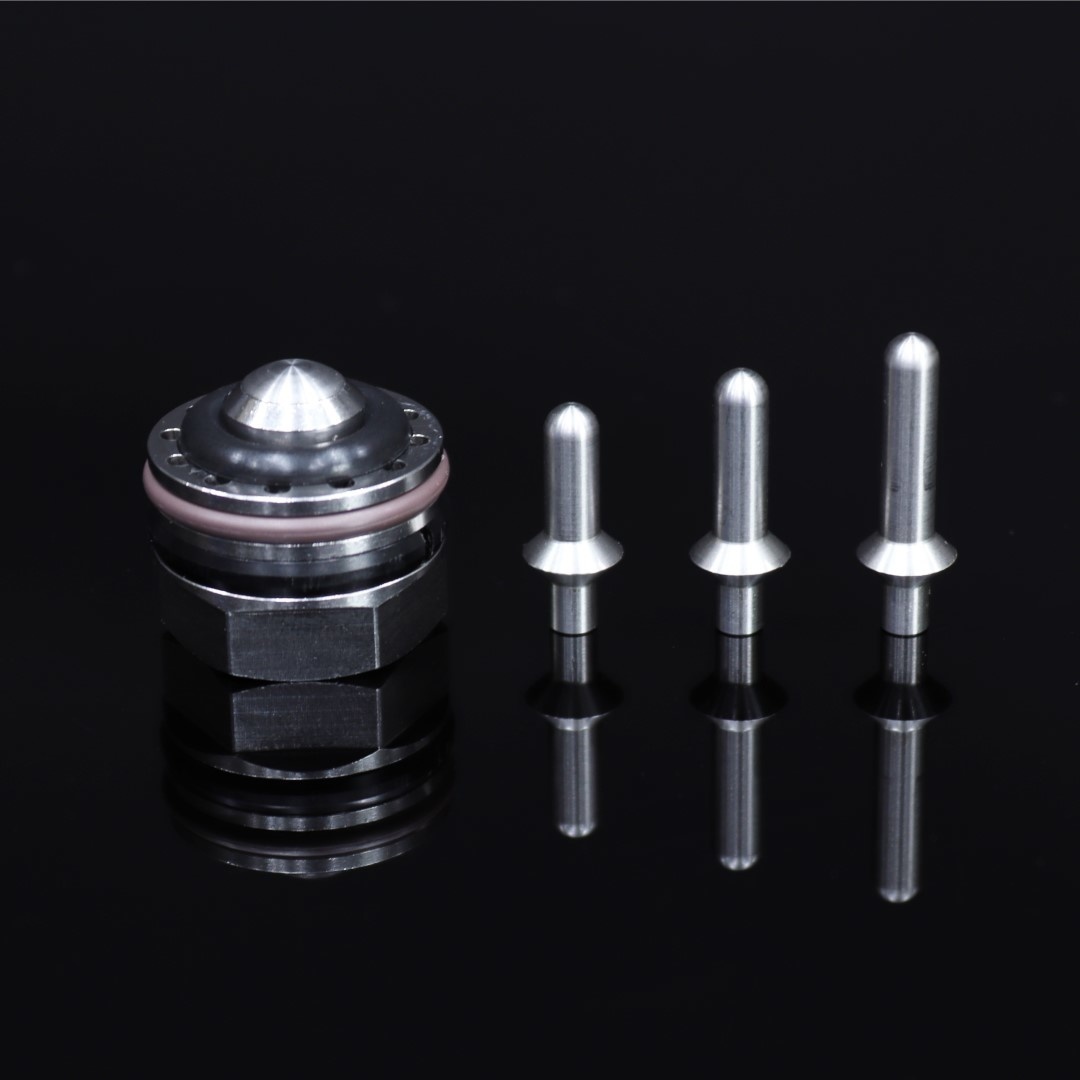 This piston head feature: – Viton Oring with a ventilated design. – No airbrake, short, medium & long airbrake options (for 4.60 mm internal nozzle – for TAC-41 GBB cylinder head only). – POM piston ring – NBR 80° Oring damper – Stainless steel CNC construction, for additional piston mass (from 30.2 up to 32.2 grams, instead of 7.6 grams for the original piston head) An airbrake is cutting the air flow before the piston hits the bottom of the cylinder, creating an air damper that will reduce the impact noise, possibly at the cost of muzzle energy reduction. Compatible with: – original SRS piston (SBA-BPS-13) – original TAC-41 piston (SBA-BPS-30) – variable mass piston for SRS (SBA-BPS-18) – variable mass piston for TAC-41 (SBA-BPS-31) – steel variable mass piston body (SBA-BPS-XX)