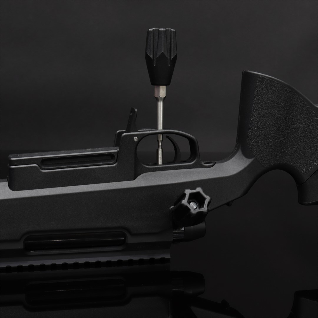 TAC-41 spring guide stopper tool This tool has been designed for player who disassembly often the bolt of their TAC-41, typically for storage in a rigid case, but also for technician who enjoy good tools. Stainless steel CNC construction, including a black Vauban bolt knob (SBA-BKB-09). This tool can accept any bolt knob in our catalog as handle. Compatible with: – SBA-BKB-01 – Tactical bolt knob – SBA-BKB-02 – Match bolt knob – SBA-BKB-03 – Operator bolt knob – SBA-BKB-04 – Bakelite bolt knob – SBA-BKB-05 – Lightweight bolt knob – SBA-BKB-06 – Carbon bolt knob – SBA-BKB-07 – Grip bolt knob – SBA-BKB-08 – Twisted bolt knob – SBA-BKB-09 – Vauban bolt knob