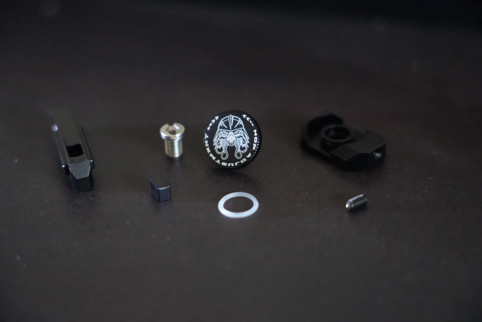 CUANDO VAYAS A INSTALAR EL TORNILLO CLICKER QUE SE COLOCA DENTRO DE LA CARCASA TDC, APLICA LOCTITE ROJO Y AJUSTA EL TORNILLO CON UNA LLAVE HEX HASTA QUE LA RUEDA EMPIECE A HACER CLICS.