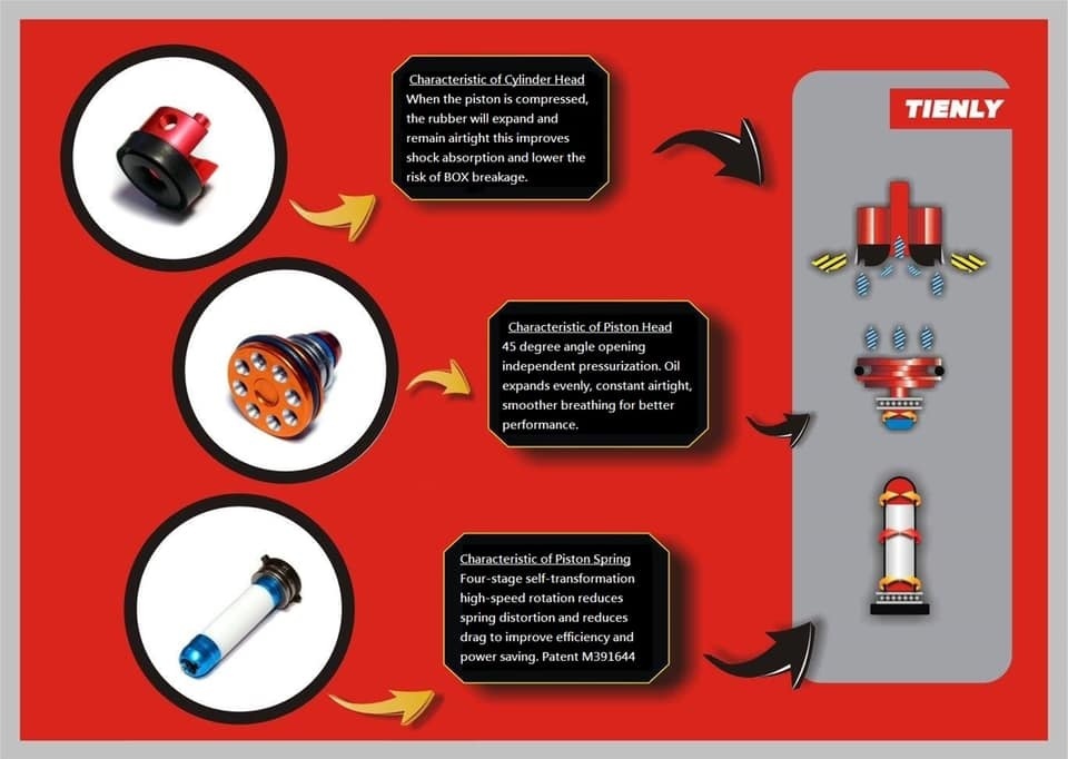 Orificios de ventilación agrandados para aumentar el flujo de aire retrayendo la cabeza del pistón