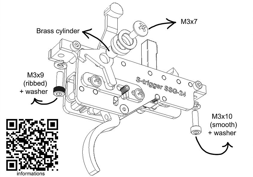 El paquete incluye S-trigger SSG-24, dos tornillos para montar en el receptor