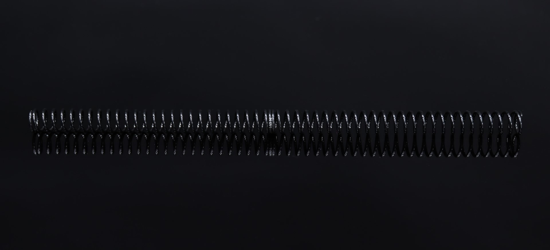 APS 13 mm, muelle de 150 Newtons Este muelle sigue el “estándar APS 13 mm” (para guía de muelle de 9 mm de diámetro exterior). Se adapta a cualquier rifle compatible con este estándar, incluidos todos los SRS (excepto el mecanismo de empuje) y todos los TAC-41. Mientras se comprime a 99 mm de longitud, entrega 150 Newton (+/- 5%, alrededor de 9 kg de fuerza). Este resorte recibió un recubrimiento de electroforesis negro y un marcado láser para identificar rápidamente el resorte.